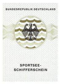 Amtlicher, empfohlener (Vorgeschrieben zum Führen von Sportbooten, die gewerbsmäßig zur Ausbildung genutzt werden) Führerschein zum Führen von Yachten mit Motor und unter Segel in küstennahen Seegewässern (alle Meere bis 30 sm und Ost. Und Nordsee, Kanal, Bristolkanal, Irische und Schottische See, Mittelmeer und Schwarzes Meer).